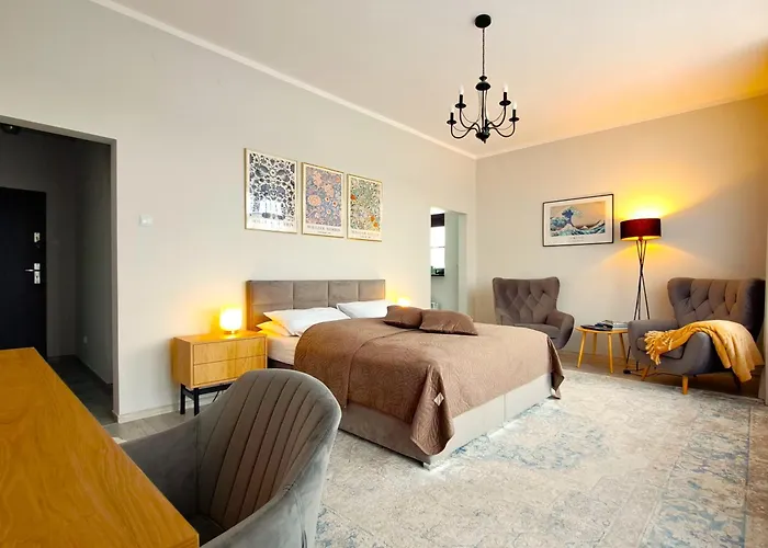 A Tullu Apartament - W Centrum, Blisko Bulwaru, Blisko Molo biztosít erkélyt és ülősarkot, emellett kilátást nyújt a városra. Élvezze a szálláshely hajszárítóval, fürdőlepedőkkel és papucsokkal felszerelt fürdőszobájának kényelmét. Külön WC is található.